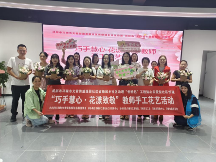 为关爱职教中心女教师、缓解其教学与生活压力,延续教师节的尊崇与关怀,在成都市邛崃市文君街道省级城乡社区治理“创特色”工程贴心关爱型社区创建项目支持下,2025年9月11日,由邛崃市文君街道渔箭社区居民委员会主办,邛崃市仁爱社会工作服务中心承办,邛崃市文君街道、邛崃市总工会、邛崃市职教中心协办的“巧手慧心・花漾致敬”教师手工花艺活动,在邛崃市渔箭社区党群服务中心顺利开展。