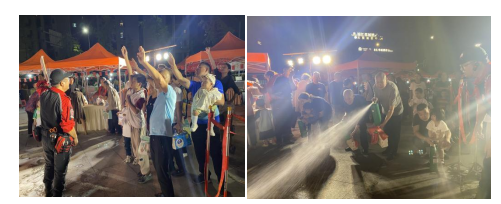 活动现场,消防安全体验环节备受瞩目,辖区居民踊跃参与各项实操,大家轮番上阵,按照“提、拔、握、压”的步骤,亲手操作灭火器成功“扑灭”初起“火情”。紧接着的防毒面罩佩戴体验中,大家都认真模仿学习,迅速掌握了这一关键设备的正确穿戴方法。随后的安全知识问答环节气氛紧张热烈,大家在抢答中巩固了所学,纠正了误区。