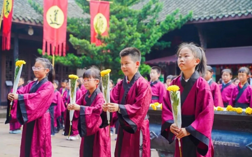 踏入三苏祠,孩子们在庄严肃穆的氛围中,举行了简朴而恭敬的祭拜仪式。他们手持鲜花,神情庄重,向三位文学巨匠表达最崇高的敬意。这一刻,孩子们的心灵得到了净化,他们仿佛感受到了“一门父子三词客,千古文章四大家”的文学地位与人格魅力。