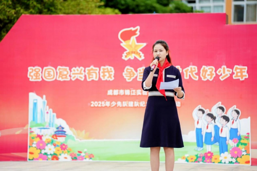 金秋送爽,队旗飘扬。2025年10月13日,成都市锦江实验学校隆重举行了“强国复兴有我 争当新时代好少年”少先队建队纪念日主题活动。全体师生齐聚一堂,共同见证了这一庄严而光荣的时刻。