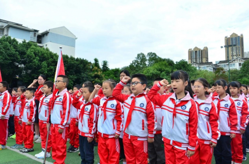 “我是中国少年先锋队队员,我在队旗下宣誓……”在大队长的带领下,新队员举起右拳,庄严宣誓,老队员重温入队誓词。铮铮誓言,是他们对组织最坚定的承诺,也是他们迈向新征程的起点。