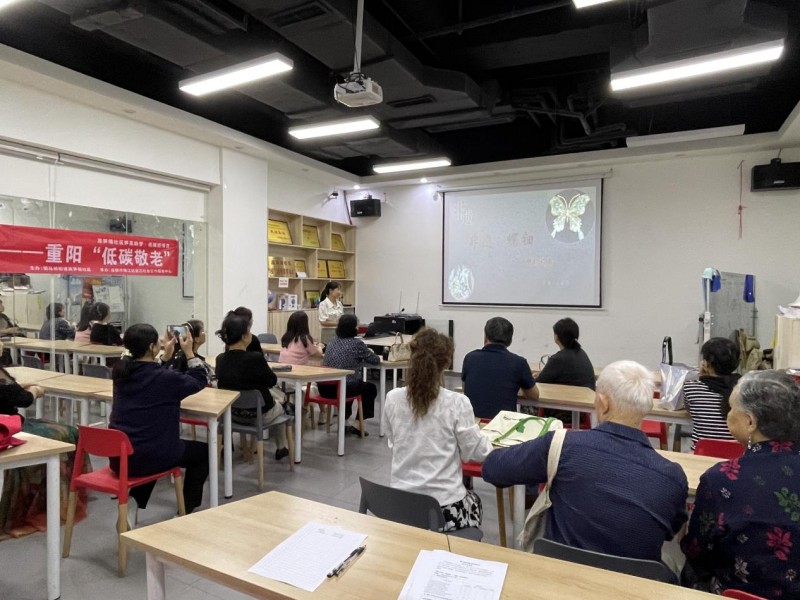 为了促进居民朋友的绿色环保意识,重阳节前夕,低碳团成员为传达一种优雅而深刻的情感方式,对长寿、幸福与生命蜕变的美好祝愿,特在高笋塘社区特推出“笋宝助梦·低碳团——低碳重阳,通过制作非遗螺钿胸针促进环保意识和友邻亲睦。共同为低碳社区贡献力量。