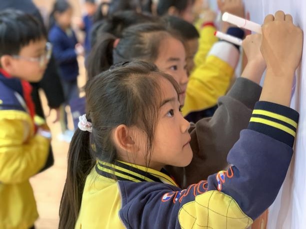 “加油!加油!”此起彼伏的呐喊声响彻操场。在重现经典的马德堡半球实验时,同学们分组进行“拔河比赛”,需多人协作才能拉开被抽成真空的半球,亲身体验大气压力的强大作用力。这场特别的科学对决,不仅让大家理解了抽象的大气压强原理,更在团队协作中收获了快乐。此外,活动还设置了心理健康环节,“哈哈实验室”通过趣味实验缓解学习压力,“彩虹成长桥”则引导同学们在背景板绘制笑脸与心愿,分享情绪,建立积极心理暗示。