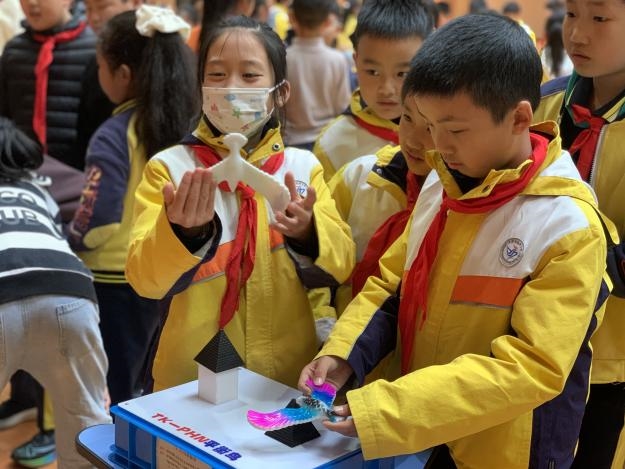 最受同学们追捧的当属科普设备体验环节。在老师的专业指导下,同学们以小组为单位有序参与,十多项体验项目涵盖光学、力学、电磁、机器人等多个领域。同学们以小组为单位有序参与,十多项体验项目涵盖光学、力学、电磁、机器人等多个领域。大家亲手操作3D打印机、机械臂、激光雕刻机等设备,体验“从设计到成品”的科技创造全流程;在“穿越火线”项目中,通过操控导电圆环考验手部稳定性,直观理解导体接触导通原理;“千人震”实验里,同学们手拉手形成电路,感受静电积累与集体放电的奇妙现象。大家专注投入、相互协作,时而认真记录实验现象,时而热烈讨论科学原理,现场氛围热烈而有序。