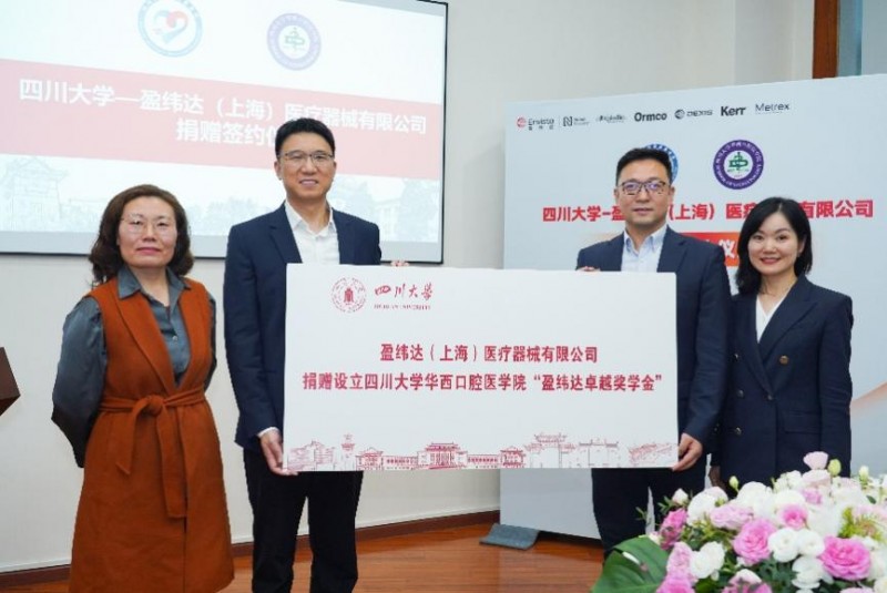 2025年11月5日,全球大型口腔医疗器械集团盈纬达与四川大学“卓越奖学金”捐赠仪式在华西口腔医学院教学楼正式举行。盈纬达正畸和影像事业部总经理徐晓东、四川大学教育基金会副秘书长贾秀娥、四川大学华西口腔医学院副院长袁泉、四川大学教育基金会项目部部长王汾雁等领导出席活动,双方以产学研教深度融合为核心,开启口腔专业人才培养的全新阶段。