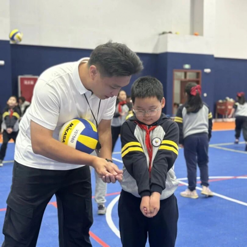 陈程老师在四(6)班执教的《排球正面双手垫球》,则是一堂充满活力的体育课。陈老师从徒手模仿开始,逐步过渡到实垫练习,再从自抛自垫到双人对垫,层层递进,循序渐进。孩子们在“插、夹、抬臂”的动作中掌握排球技巧,在比赛中巩固技能,最终在汗水与欢笑中收获了成长。陈老师的课堂不仅锻炼了孩子们的身体素质,也培养了他们的团队合作精神。