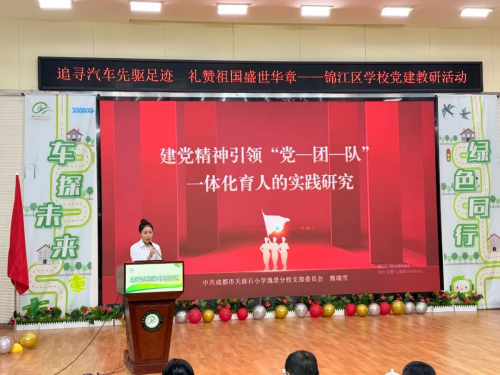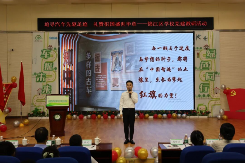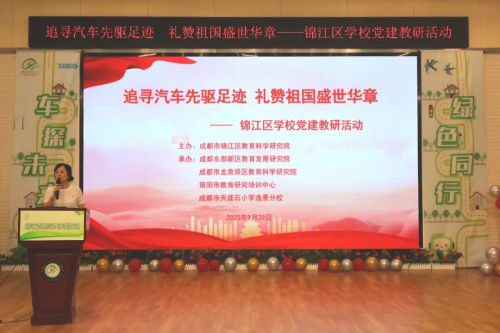 近期,一场意义非凡的联合党建教研活动在成都市天涯石小学逸景分校成功举办。此次活动主题为“追寻汽车先驱足迹,礼赞祖国盛世华章”,由成都市锦江区教育科学研究院主办,成都东部新区教育发展研究院、成都市龙泉驿区教育科学研究院、简阳市教育研究培训中心及成都市天涯石小学逸景分校共同承办,东部新区、龙泉驿区、简阳市教育研究院党建中心组代表及锦江区各校党建联系人也参与了此次活动。