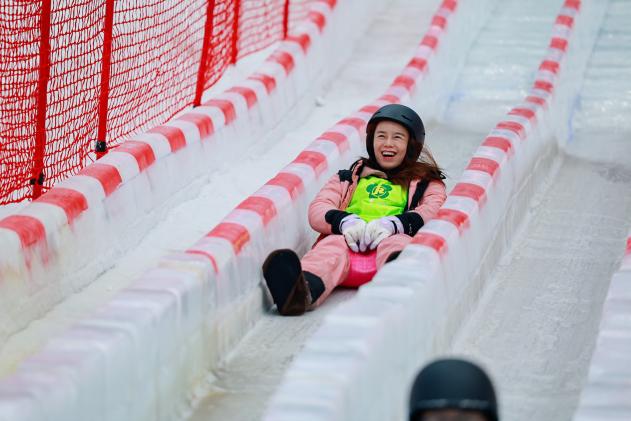 在娱雪区,欢声笑语与飞舞的雪花交织。大家或乘坐雪圈体验速度的快感,或脚踏滑雪板尝试平衡,或在雪地中发挥创意堆砌“梦想城堡”,每一张脸庞都洋溢着纯真的快乐。