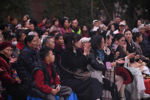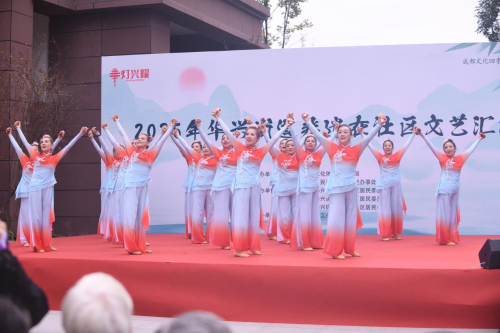 整场演出紧扣“非遗传承”与“社区温情”两大主题,内容丰富多彩、形式多样。民俗表演《幺妹灯》以灵动的舞姿与生动的唱腔,再现传统民俗场景,传递出本土文化质朴而鲜活的生命力;古筝《彝族舞曲》、茶艺《茉莉香飘盖碗》、舞蹈《西域红》、服装秀《紫荆花园》以及四川车灯表演《灯火华兴幺妹情》等节目接连上演,赢得观众阵阵掌声。四川连萧《华灯兴万家》更将现场气氛推向高潮,演员们以饱满的热情、欢快的节奏,生动演绎华兴街道的风土人情与非遗传承故事,让观众在轻松愉悦的氛围中领略非遗艺术的独特韵味。最后,空军成都航空四站装备修理厂带来的合唱《空军军士学校校歌》,以激昂的歌声与整齐的队列,展现了空军战士的豪情壮志与深厚家国情怀,为整场汇演画上圆满句号。