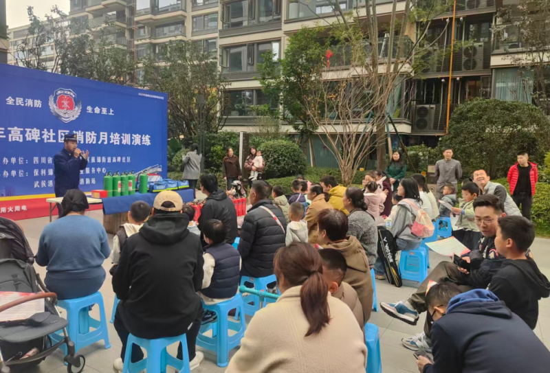 2025年11月是第34个全国消防月,正是应对冬季消防安全挑战的关键契机。2025年11月16日15时,保利锦城和颂小区广场人头攒动,由高碑社区主办,保利锦城和颂物业、武侯消防聚龙路消防站协办的 “全民消防、生命至上 —— 安全用火用电” 消防月培训演练正式开启,居民、物业员工及周边商户代表踊跃参与,在实操实训中学习安全技能。