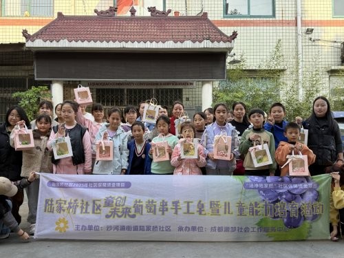 为践行环保理念,促进儿童参与社区治理,培养社区小主人的责任意识和实践能力,2025年11月15日下午,由陆家桥社区主办、成都源梦社会工作服务中心承办的"童创未来"葡萄串手工皂DIY暨儿童能力培育活动在社区二楼活动室欢乐开展。活动吸引了25组亲子家庭积极参与,通过环保手工制作与绿色议事实践相结合的方式,为孩子们搭建了一个践行环保理念、参与社区建设的平台。