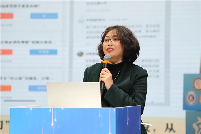 成都市杨柳名校长工作室成员、西航港小学副校长喻玮以《重构关系 支持成长》为题,分享了学校依托家校社协同育人中心,构建五彩课程体系及“一体两翼”德育模式的实践路径。她指出,学校通过厘清家校社三方角色,推动家庭从被动配合转向主体责任人,社会从外部环境转变为育人支持平台,实现了“彼此的抵达”。