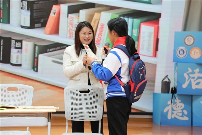 情景展演环节,棠湖小学专职副书 记雷朝丽与家长们带来《遇见学习,预见成长——棠湖小学智慧父母研修班的故事》,以真实温情的故事打动全场。家长代表们生动演绎了从育儿困惑到智慧成长的转变历程,展现了学校通过系统化、课程化的家长培育,有效激发家庭教育主体意识,推动“爱与智慧”同行的共育实践。展演深刻诠释了“家长是教育的同行者”这一理念,为家校协同提供了可感、可学的实践样本。