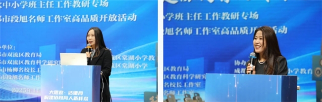 11月5日,四川省2025年第五次中小学班主任工作教研专场暨成都市杨柳名校长工作室、段旭名师工作室高品质开放活动在双流区棠湖小学举行。活动响应“立德树人”根本任务,聚焦大思政建设,深化协同育人实践,全省德育骨干齐聚交流。双流区教科院小学德育教研员段旭与棠湖小学副校长李红艳主持。