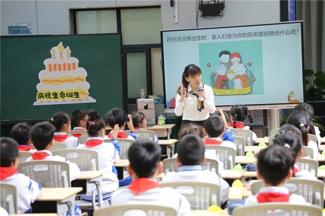 成都市段旭名师工作室成员蔡雪梅老师带来的《我喜欢过生日》,在二年级学生之间悄然展开心灵成长。她借力经典绘本,创设沉浸式生日情境,为孩子们搭建起理解生命的阶梯。课堂以“听—说—悟”三维推进,开放的话题交流点燃思维火花,最终让学生透过摇曳的生日烛光,感受生命成长的珍贵与暖意。