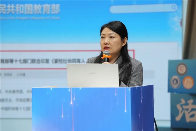 成都市杨柳名校长工作室成员、成都市海滨小学副校长田敏聚焦家长赋能,展示了以5A级爱慧家长认证为抓手的家校共育新生态。该校通过“三维评价—答辩赋能—长效辐射”机制,激发家长从旁观者成长为教育同行者,形成了三间教室协同育人的生动格局。