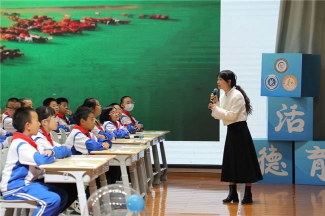 成都市双流区棠湖小学党支部书 记、校长杨柳致欢迎词,并介绍本次活动以“大思政・活德育——构建协同育人新样态”为主题,就是要聚焦大思政,以“破壁”的勇气和“创生”的智慧,打破家庭、学校、社会之间的壁垒,构建家校社协同育人共同体。活动中将分享棠来自两个工作室的“主题微班会”融思政的生动案例和“三联”模式促协同育人教联体建设的初步探索和实践经验。