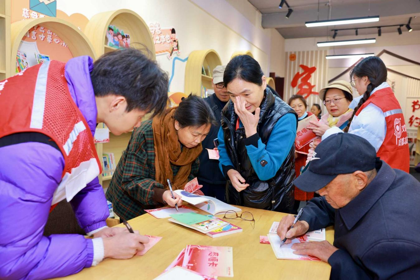 最受欢迎的,当属“书屋+文旅”融合打卡活动。参与者们从战旗书屋出发,途经乡村十八坊,最终抵达战旗书屋,完成了一场知识与趣味的探索之旅。在战旗书屋,参与者两两一组热烈讨论书籍中的典故文化;在学习强国小站,从国家政策到地方发展,时政知识问答点燃热情;在家风馆,居民们写下阅读心得与好书推荐,“读红色书籍,悟初心使命”“推荐《战旗村故事》,了解家乡变迁”……一张张卡片,成为活动中最动人的风景线。