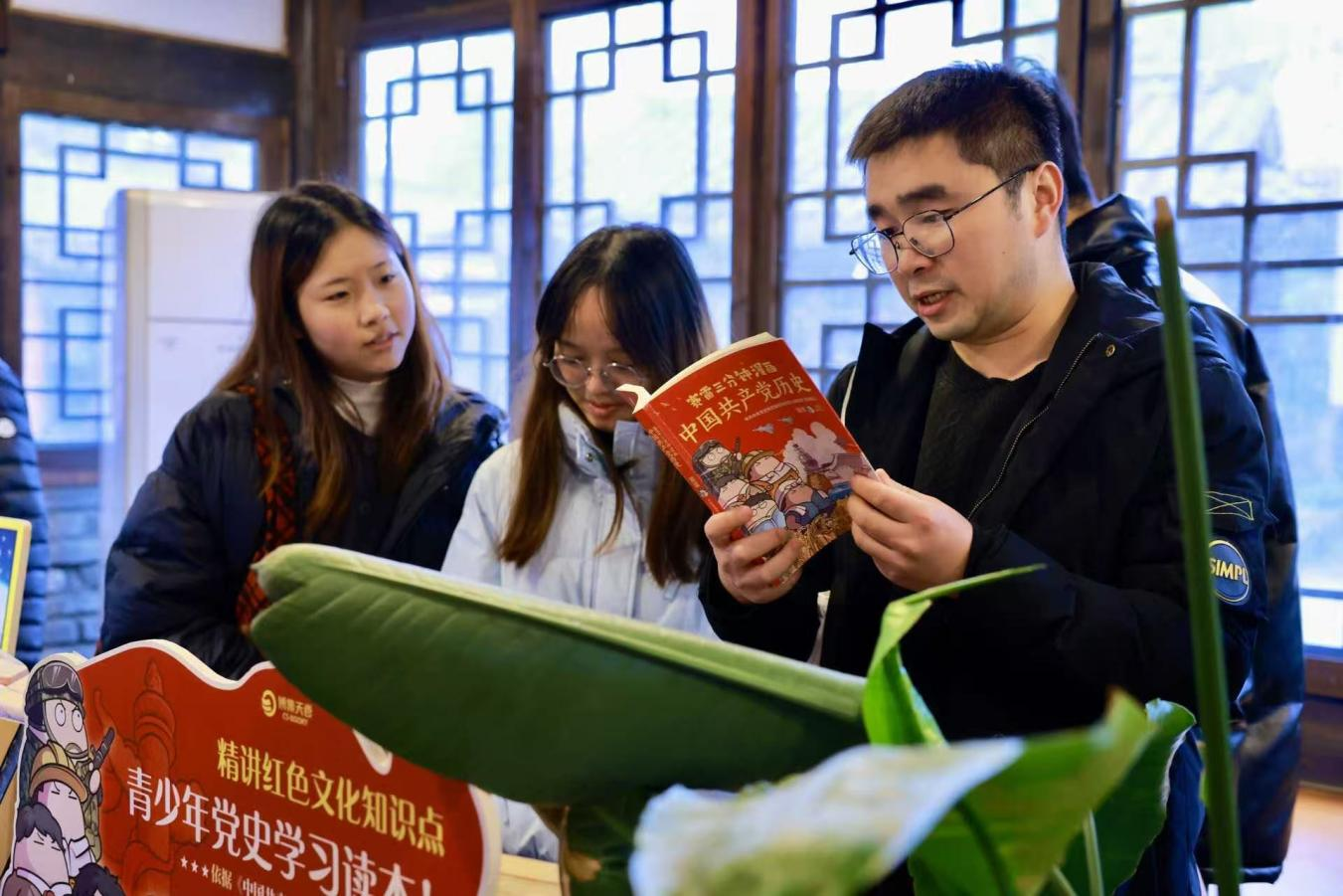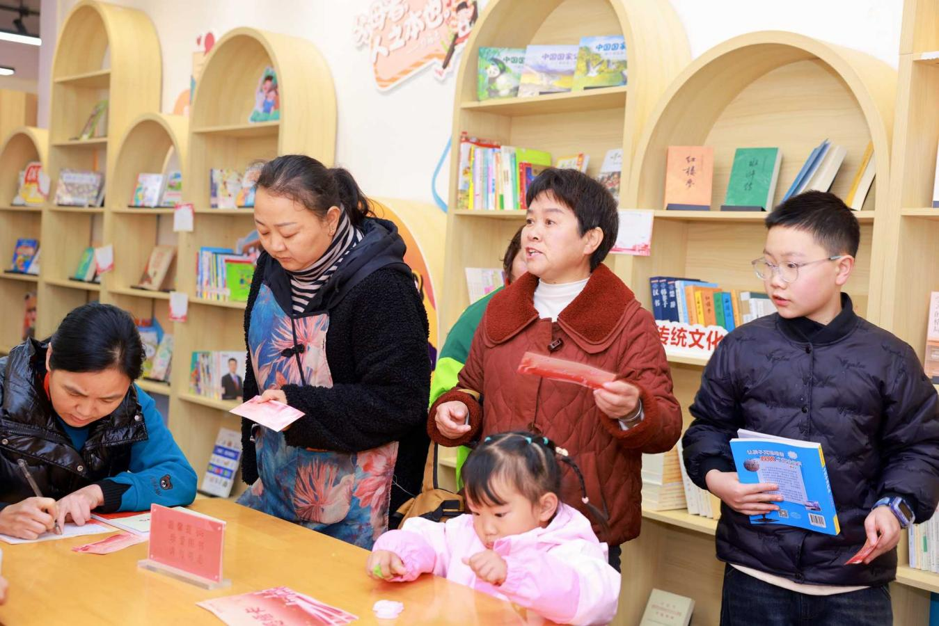 作为活动主阵地的战旗书屋,早已是当地知名的“城市阅读美空间”——书架上80%的红色经典藏书整齐排列,青少年党史学习阅读角童趣十足,浓郁的红色基调让参与者瞬间沉浸在阅读氛围中。活动首个环节“红色经典润初心”,便将气氛推向高潮,战旗村党员代表与亲子家庭围坐一堂,共同分享“书籍里的红色故事”,孩子们仰着小脸认真聆听,在家长的榜样引领与互动交流中,红色基因悄然融入成长记忆,阅读的种子也在幼小心田里深深扎根。