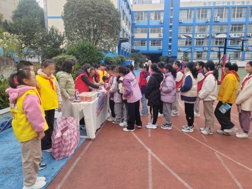 活动现场,6 年级班主任及老师们有序组织学生集结,氛围温馨热烈。活动伊始,由学校德育主任都皎详细介绍活动背景、主题及流程,让大家明确活动意义;随后,学校大队辅导员廖博继代表学校发言,鼓励孩子们以公益践行爱心,传递温暖力量。