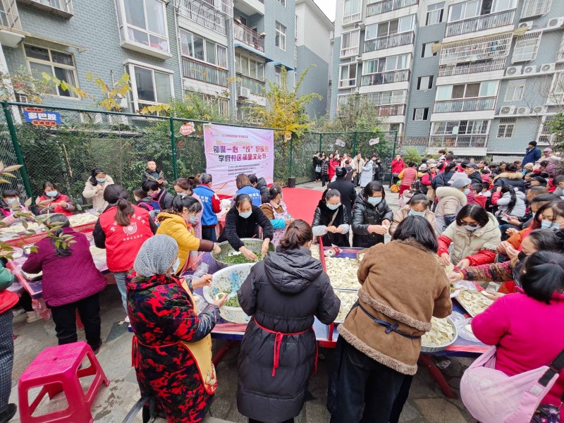 现场最热闹的莫过于“饺”聚温情手作区。这一核心环节正是居民共创共识的体现。学府社区联合响应共创倡议的四季隆生活超市,不仅准备了丰富馅料,更带来了居民喜爱的彩色面皮,吸引众多家庭参与。大家围坐一起,巧手翻飞,共包团圆饺,现场笑语欢声,其乐融融。当热气腾腾的饺子出锅,志愿者们谨守共创会上确定的“敬老优先”原则,首先分发给年长邻居。更有一支由社区工作人员和居民志愿者组成的“送暖小分队”,将这份凝结着邻里心意的冬至祝福,上门送到行动不便的高龄老人家中,让温暖无死角地传递。