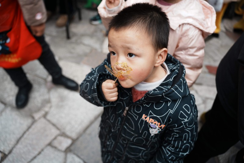 活动现场的文化氛围同样由多元力量共同营造。不仅有四川传媒学院志愿者带来的专业舞蹈,鸿盛花园小区的居民文艺骨干也自发献上了精彩的歌舞表演,充分展现了自组织、自展示的社区活力。在非遗糖画体验区,高校志愿者们不仅演示技艺,更亲切引导小朋友们亲手尝试,将传统文化的趣味种子播撒心间。