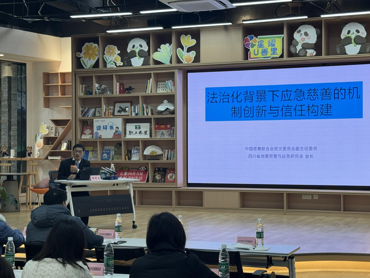 冬日蓉城暖意融融,慈善同行共话发展。2025年12月22日,由四川省慈善联合总会应急慈善工作委员会主办的“新时代应急慈善发展趋势与创新模式”专题沙龙在“U善里”慈善空间圆满落幕。本次沙龙以“应急慈善创新・共助行业发展”为核心主题,汇聚政策解读、专家洞见、实践交流于一体,为全省应急慈善领域搭建了高效务实的沟通平台,30余名来自全省各级慈善会、基金会等委员单位的应急慈善工作负责人齐聚一堂,共探新时代应急慈善高质量发展之路。