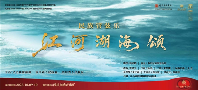 10月9日、10日,苏州民族管弦乐团携民族管弦乐《江河湖海颂》将亮相四川交响音乐厅,参演由文化和旅游部主办的第十四届中国艺术节,角逐第十八届文华奖。