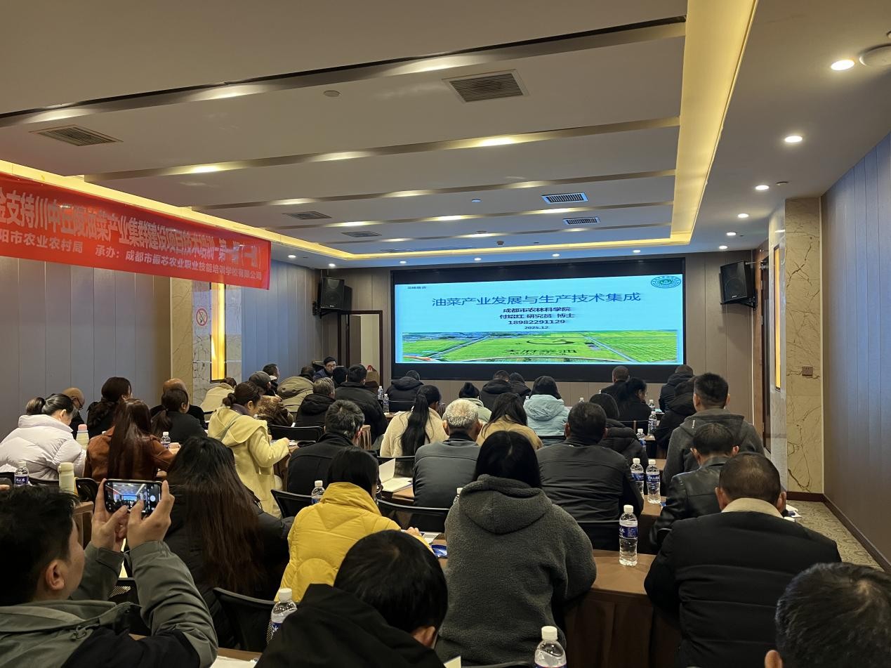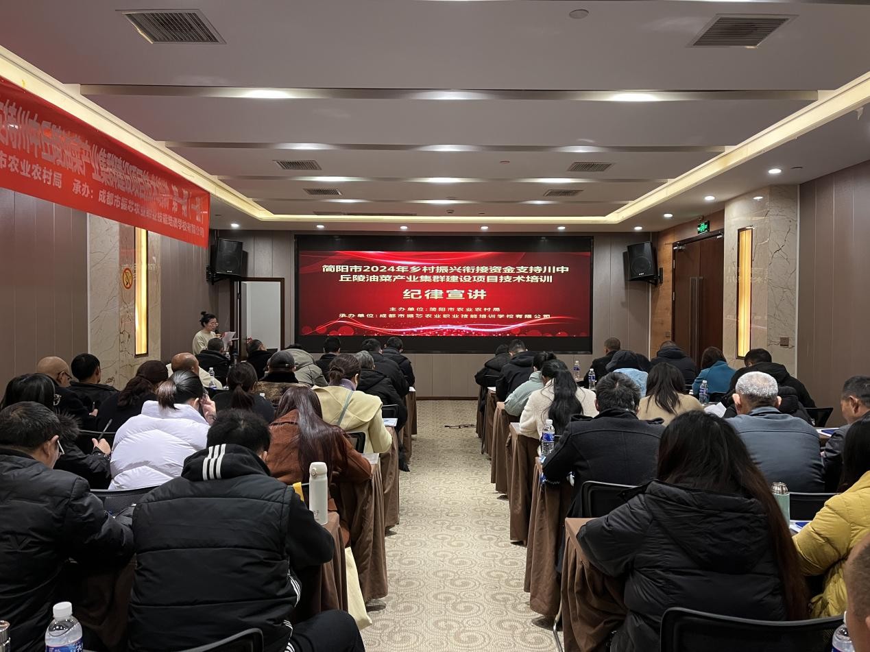 12月1日,由简阳市农业农村局主办的"简阳市2024年乡村振兴衔接资金支持川中丘陵油菜产业集群建设项目技术培训(第一期)"在邛崃正式启动。本次培训依托乡村振兴战略总体部署,以保障油脂供给安全为根本,以建设四川省油菜产业集群为载体,通过系统化技术培训推动油菜产业优势聚集、集中连片发展,助力挖掘全市油菜单产潜力。