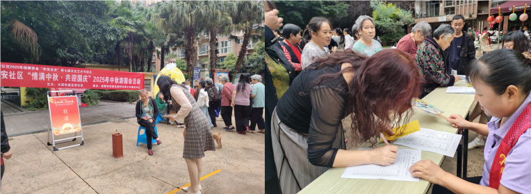为迎接中华人民共和国成立76周年、庆祝2025年中秋,同时丰富广大居民的精神文化生活,弘扬中华民族传统节日风俗文化,增强社区凝聚力,营造邻里和谐的良好氛围,提升居民群众生活幸福感。2025年9月27日,大面街道龙安社区携手成都市武侯区新时代青少年服务中心,在龙安社区开展了“情满中秋·共迎国庆”2025年中秋国庆系列活动,此次活动共计吸引接近750余人参与。
