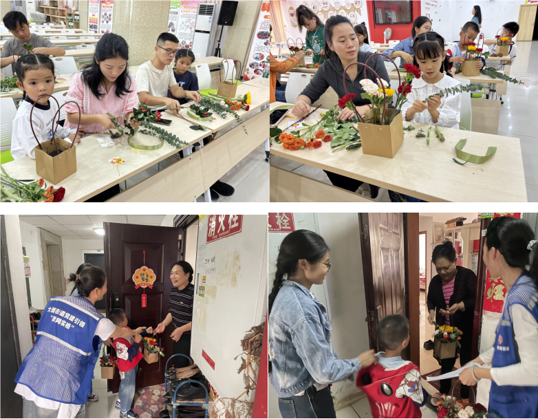 9月27日上午九点,参与关心关爱活动的亲子家庭陆陆续续到达龙安社区党群服务中心一楼大会议室参。大家在社工的引导下,先为社区特殊家庭绘制了一张张独一无二的贺卡。随后大家在社工的带领下,开始制作此次关心关爱活动的花束。亲子家庭一起把对社区居民的祝福,放在小小的花篮中,制作结束之后,便同网格员一起前往特殊家庭家中进行关心关爱,送一篮鲜花,与他们聊聊天、说说话,礼轻情意重,这不仅代表社区对辖区特殊家庭的关心关爱,更是龙安社区居民们邻里和谐、友爱互助的一种体现。