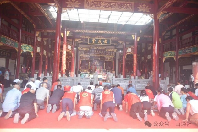 紧接着,贵州后裔集体上前,面向祖宗牌位行三鞠躬礼:一鞠躬:敬先祖,承血脉根脉,不忘来时路;二鞠躬:感宗族,续千年情谊,共叙一家亲;三鞠躬:祈未来,愿世代和睦,同谱新篇章!