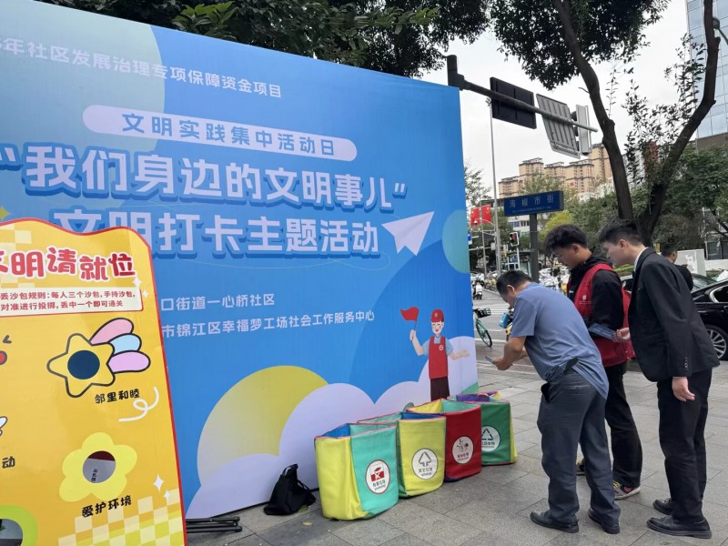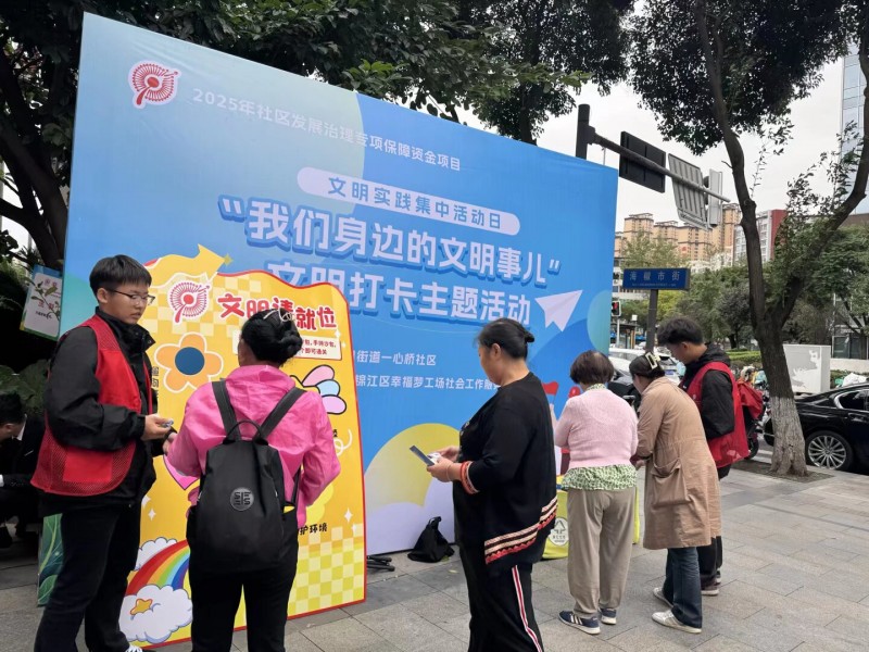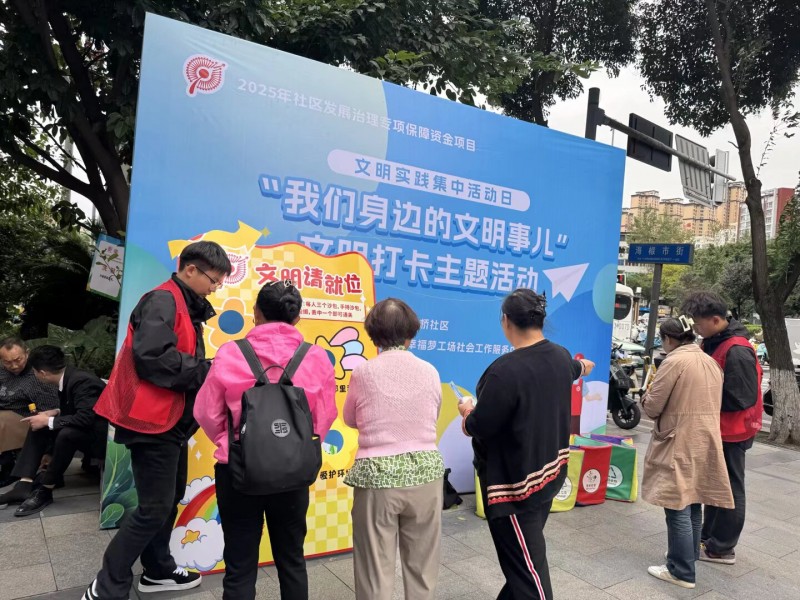为积极响应社区服务需求,增强社区居民之间的交流与互动,提升居民的幸福感和归属感,一心桥社区联合成都市锦江区幸福梦工场社会工作服务中心于2025年10月11日开展文明实践集中活动日“我们身边的文明事儿”文明打卡主题活动。旨在通过活动,为居民提供便捷服务、普及实用知识、增进邻里情谊,共同营造和谐美好的社区环境。