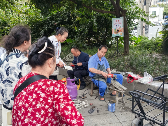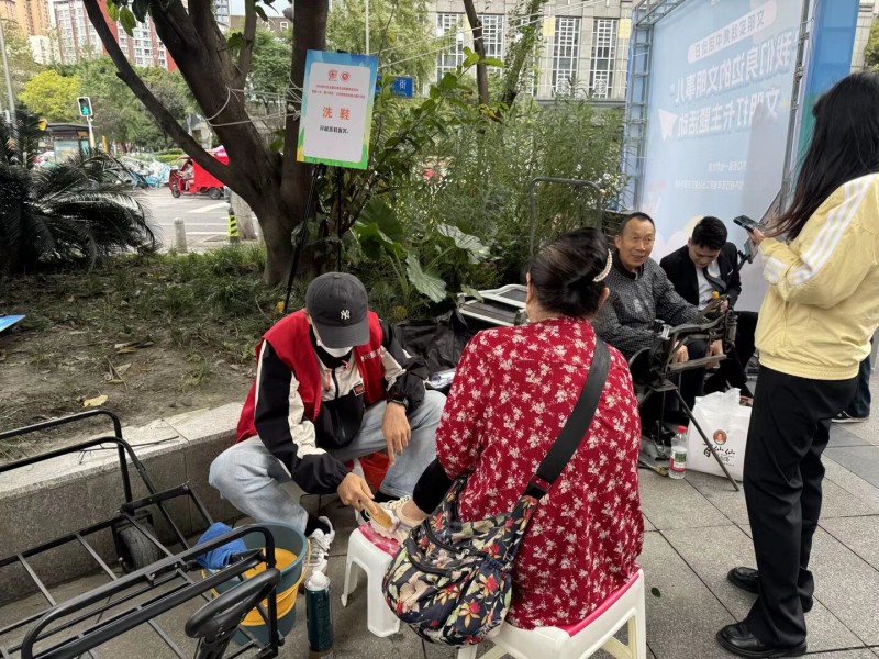 活动现场,设置了免费磨刀、清洗锅底、爱心义剪、免费修鞋、免费洗鞋五个服务区域,满足居民日常需求。