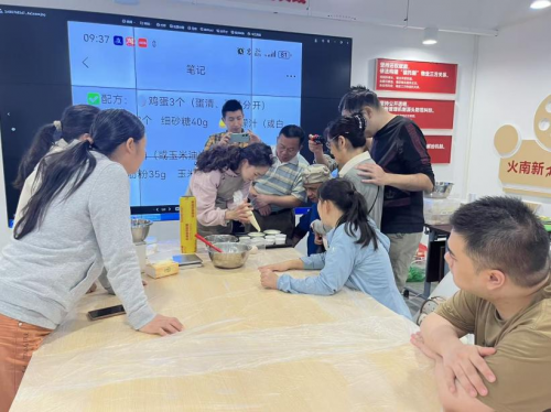培训现场暖意融融、香气四溢。学员们专注观察每一个操作细节,认真记录要点,在老师的巡回指导下反复练习。从最初的手法生疏到逐渐熟练,大家沉浸在动手创作的乐趣中。当一碗碗温润香甜的糖水、一份份绵软香甜的雪花酥、一个个造型精致的蛋糕与披萨接连完成时,学员们纷纷拿起自己的作品拍照留念,脸上洋溢着自豪与喜悦。“以前总觉得这些精致甜点离自己很远,没想到现在能亲手做出来!学会这门手艺,说不定以后能在家做些小生意,生活更有底气了。”一位学员抚摸着刚做好的毛巾卷感慨道。