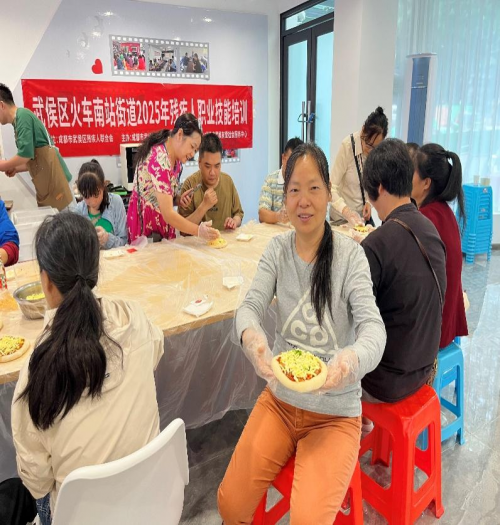 为认真开展武侯区2025年残疾人就业技能培训工作,帮助辖区残疾人找到就业、创业方向,切实提升辖区残疾人群体的职业技能与就业竞争力,拓宽就业创业路径。2025年10月11日上午,火车南站街道残疾人职业技能培训正式开班。本次课程为期五天,共组织辖区10位就业年龄段残疾人参训,课程以网红小吃甜点制作为主,涵盖中式糖水、雪花酥、水果蛋糕、披萨、毛巾卷蛋糕等系列制作课程,最大程度帮助残疾人提升网红小吃甜点制作技能,鼓励残疾人伙伴从简便、上手快、实用、低成本投入角度去考虑创业增收。