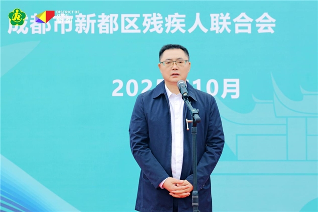 (新都区残联吴子建为第三名获奖选手颁奖)