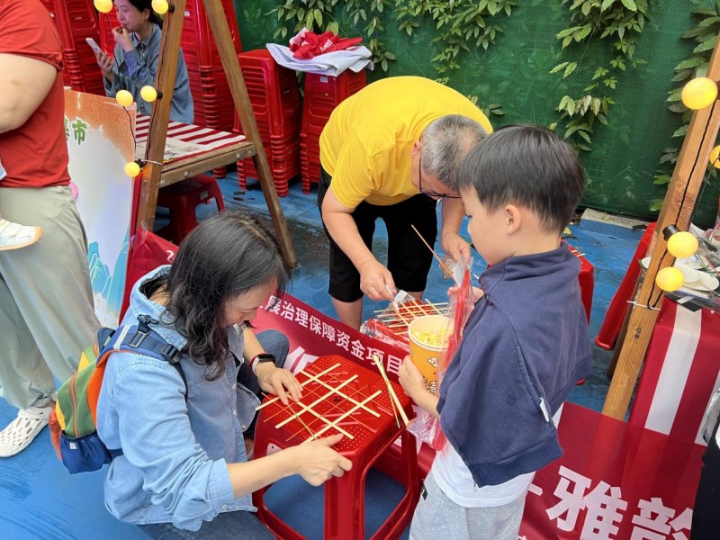 活动中,围绕“笋宝助创・低碳团”多场景多物为主线,展示环保用品变废为宝。通过笋宝形象的内核,聚焦社区绿色环保、低碳共建的理念。倾心打造竹编手工风铃,一起为社区奏响低碳和谐篇章。