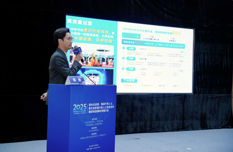 推介会上,成华区的产业硬实力与政策吸引力全面展现。在产业布局上,该区已构建“一区两园”发展格局,动漫文创、数字经济特色凸显,同时聚焦人工智能、智慧能源等新质生产力领域加速突破,其中机器人产业凭借全链条布局,成功获评国家级中小企业特色产业集群,成为区域产业发展的“金字招牌”。政策支持方面,成华区持续优化营商环境,推出营商环境6.0版,实现85%以上事项“全程网办”,让企业办事更高效、更便捷;针对动漫文创企业,更量身定制专项扶持政策,涵盖落户补贴、研发费用补贴等,为产业发展筑牢“政策后盾”。