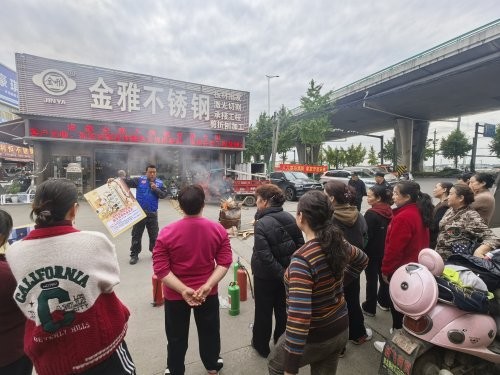 在全国第33个“119消防宣传日”来临之际,为切实解决古柏社区内仓储物流园区集中区域存在的电气过载、消防通道堵塞等居民关切的安全隐患,古柏社区于2025年11月7日开展了一场集知识讲解、技能培训与实景体验于一体的综合性消防安全演练活动,整合社区多方资源,组织社区居民、市场员工、周边商户等40余人参与,将居民的安全诉求转化为扎实的共治行动,有力推动了社区安全共防共治体系的构建。