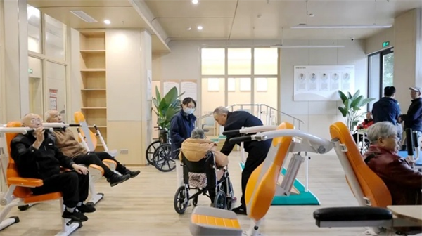 多元服务,丰富老人精神生活。机构设康复训练室、棋牌室、理发室,满足老人休闲娱乐、日常护理需求;室外乐活广场配备按摩步道、健身器材,还打造“老茶馆”茶饮休闲区,老人可在此品茶、晒太阳,广场内丰富的花草绿植不仅能提升心情愉悦感,还对延缓认知功能衰退有积极作用。
