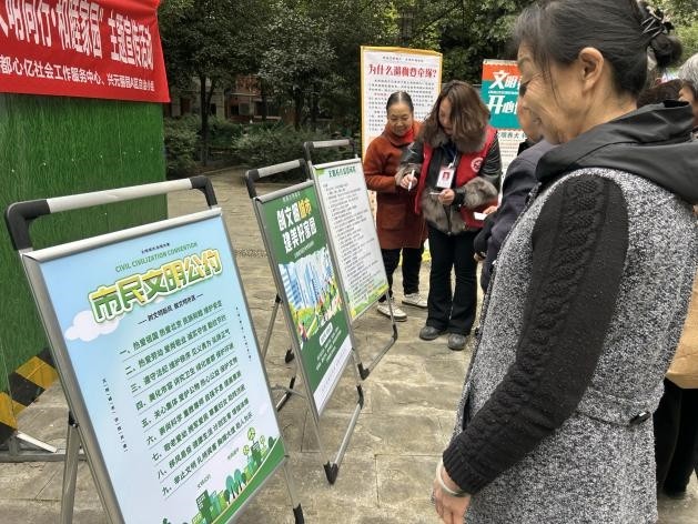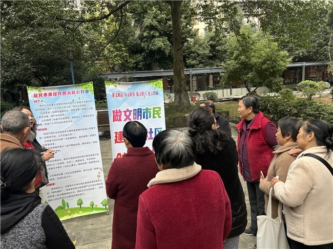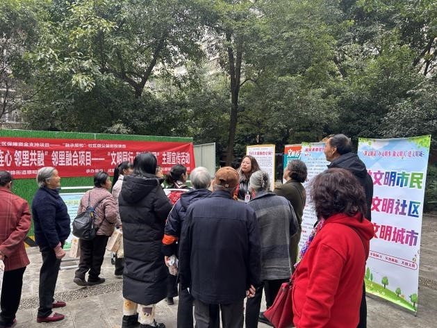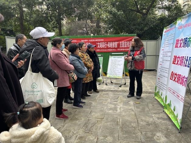 社区是居民生活的共同家园,居民文明素质是社区和谐发展的核心支撑,更是提升生活幸福感与社区品质的关键所在。当前,社区内存在的不文明养犬、水资源浪费、粮食浪费等现象,本质上反映出部分居民文明素养有待提升的问题。为积极响应社区文明建设号召,切实发挥居民自治作用,由兴元丽园A区自治小组承接的社区微项目活动——“文明同行・和睦家园”主题宣传活动,于2025年12月3日上午在兴元丽园A区小区中庭成功举办。