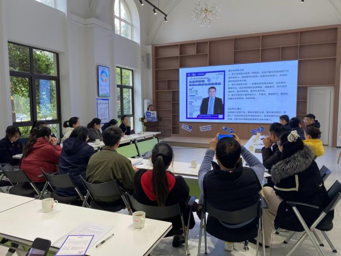 活动正式开始,异洲社工工作人员向大家介绍了“又见·萤火聚光志愿服务“队伍建设及服务内容,并通过链接专业社会资源行家学社落地三观社区,为补足产业志愿服务的专业性提供了有力的社会支持。本次活动邀请了行家学社专家志愿者谢磊,为园区企业带来《从业绩倍增,探索AI数字化转型模式》这一主题分享,他分别从产业的运营模式更新、产业供应链的设计和AI应用的介入层层递进,并以不同企业的AI大模型设计相关的数字化转型案例进行分享,来自立成都立海同创智能科技有限公司的总经理张明立深度参与并与谢总积极互动,就企业自身的各个业务环节的流程,质量管理及运营模式,机床技术交付智能训练等与分享嘉宾互动交流。