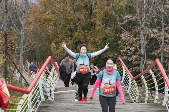 冬日的丹景台景区层林尽染,阳光洒在蜿蜒的赛道上,与三岔湖的粼粼波光相映成趣。青山之间,赛道串联起彩虹栈道、“城市之眼”观景平台、丹景亭等多个核心景观,既适配登高挑战的竞技需求,又兼顾亲子互动的休闲体验,让选手在攀登中沉浸式感受“未来之城”的生态魅力与赛事底蕴。