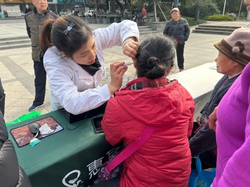 活动现场,医社协同的优势得到充分彰显。紫东阁社区负责人与医院代表签订《医社协同服务协议》,明确了医疗资源下沉、慢病诊疗对接、健康档案共享等核心协作机制;领导与医护代表共同为社区“健康小屋”揭牌,未来这里将成为长者家门口的“健康驿站”,提供常态化慢病咨询、检测等服务。“以前看病要跑大医院,现在社区有了健康小屋,还有医生定期坐诊,太方便了!”现场一位慢病长者感慨道。华西第四医院医护团队在分会场开展义诊服务,为长者提供血压血糖检测、用药指导等专业服务,成都精典口腔、惠耳听力的专家也同步提供特色健康咨询,让长者们一站式享受到多元医疗服务。