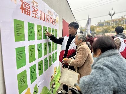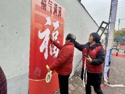 在邻里互动任务区,趣味互动活动吸引了众多居民踊跃参与。“福圣知识闯关”环节,答题展板上的题目围绕福圣社区历史沿革、文明生活规范等内容设计,居民们认真思考、踊跃作答,在答题过程中加深了对社区的了解;“蒙眼摸福”充满趣味挑战,居民佩戴眼罩在志愿者引导下原地转3圈后,小心翼翼走向展板触摸“福”字,成功触摸后收获的不仅是“福”币奖励,更有邻里间的阵阵欢声笑语;“共绘百福墙”则为居民提供了创意表达的平台,大人小孩齐动手,一笔一画勾勒祝福,一个个福字逐渐填满展板,成为凝聚邻里情感、彰显社区文化的独特载体。