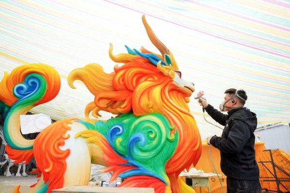 从事彩灯制作38年的高级工艺美术师赖荣富一边展示染满颜料的手,一边带记者参观已经绘制上色后的生肖龙。“生肖闹春”灯组总负责人罗皓丰说,“这组灯的设计融合了中国传统十二生肖文化,采用卡通形象造型,更贴近现代人审美,相信它一定能成为不少游客争相留念的打卡地。”