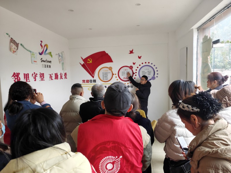12月19日上午,骨干们赴双流区怡心街道三江社区宏达世纪丽景小区进行参访学习。宏达小区曾面临与白鹤林小区类似的治理挑战。在社区及小区党组织引领下,通过引入专业社工机构,创新建立了“五方议事团”,并探索出“六步走”民主协商流程。