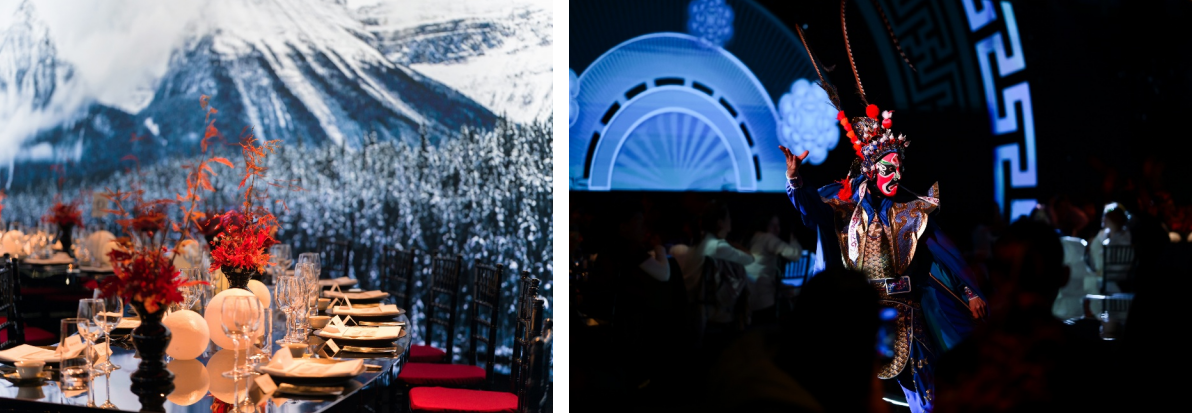 • 欢迎晚宴设于青城山六善酒店,将加拿大北境雪山轮廓融入东方意境。现场,《蜀锦》舞韵流转,长嘴壶茶艺氤氲生香,四川清音袅袅萦绕,而对川剧变脸的全新演绎则令传统艺术在当代音律中焕发新机。