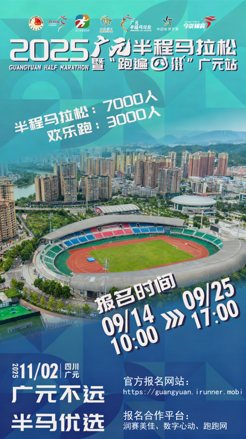 2025广元半程马拉松暨“跑遍四川”广元站,这场由中国田径协会认证,广元市人民政 府、四川省田径协会主办,广元市体育局、利州区人民政 府承办,今燊体育运营的A1类赛事将于9月14日10时正式启动报名,选手可通过“广元半程马拉松”官方微信公众号参与报名。